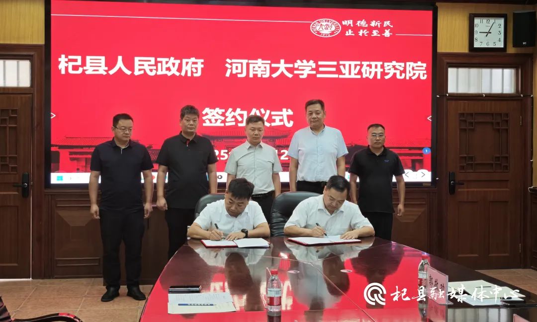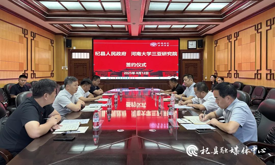 8月12日,杞县人民政府与河南大学三亚研究院在河南大学明伦校区举行校地产学战略合作协议签约仪式,县委副书记罗力鹏,县委常委、宣传部部长、副县长孙勇,河南大学资产经营有限公司党总支书记、总经理刘志勇,河南大学三亚研究院院长刘会宾,河南大学三亚研究院副院长郭敬功等参加签约仪式。