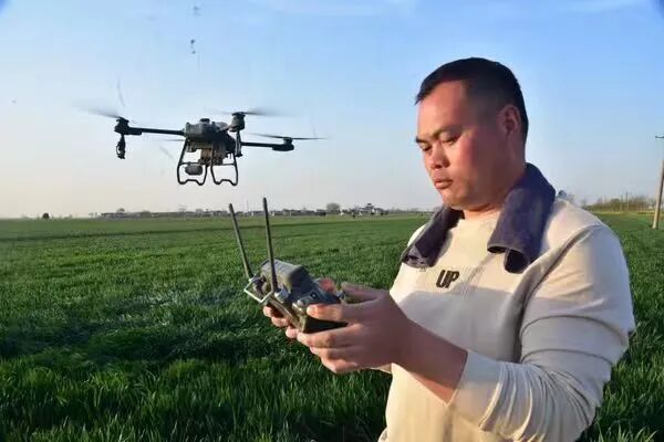 在李楼村的田间地头,另一位无人机操作手李常军也正忙碌着操控设备为小麦进行农药喷洒作业,娴熟的操作引来不少农户驻足称赞。“一天能喷施800多亩,省时省力还高效!”47岁的李常军,是返乡创业青年,如今已是乡亲们眼中的“香饽饽”。