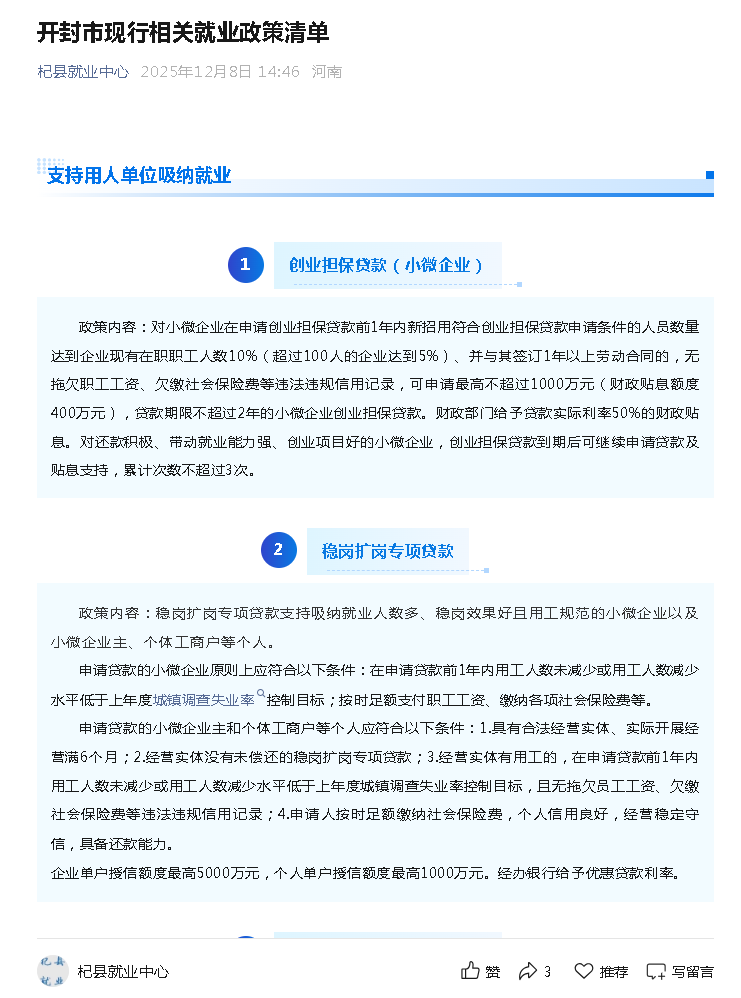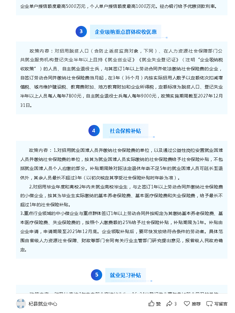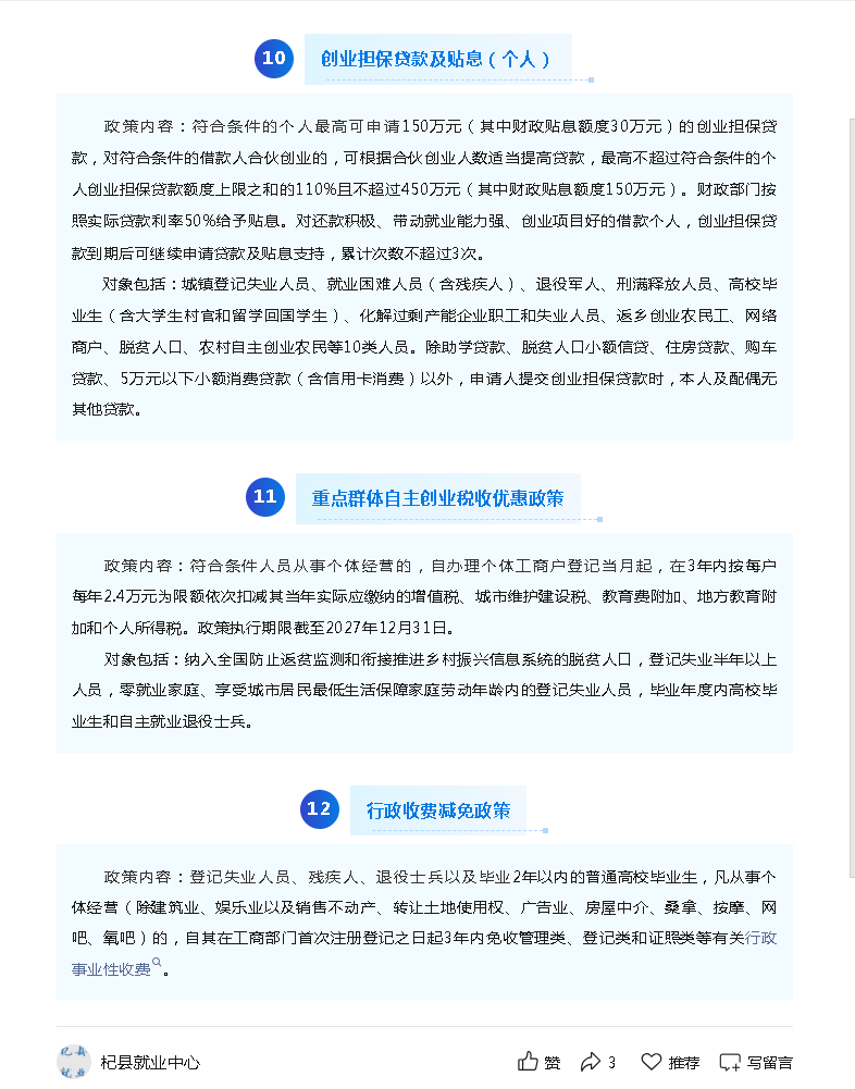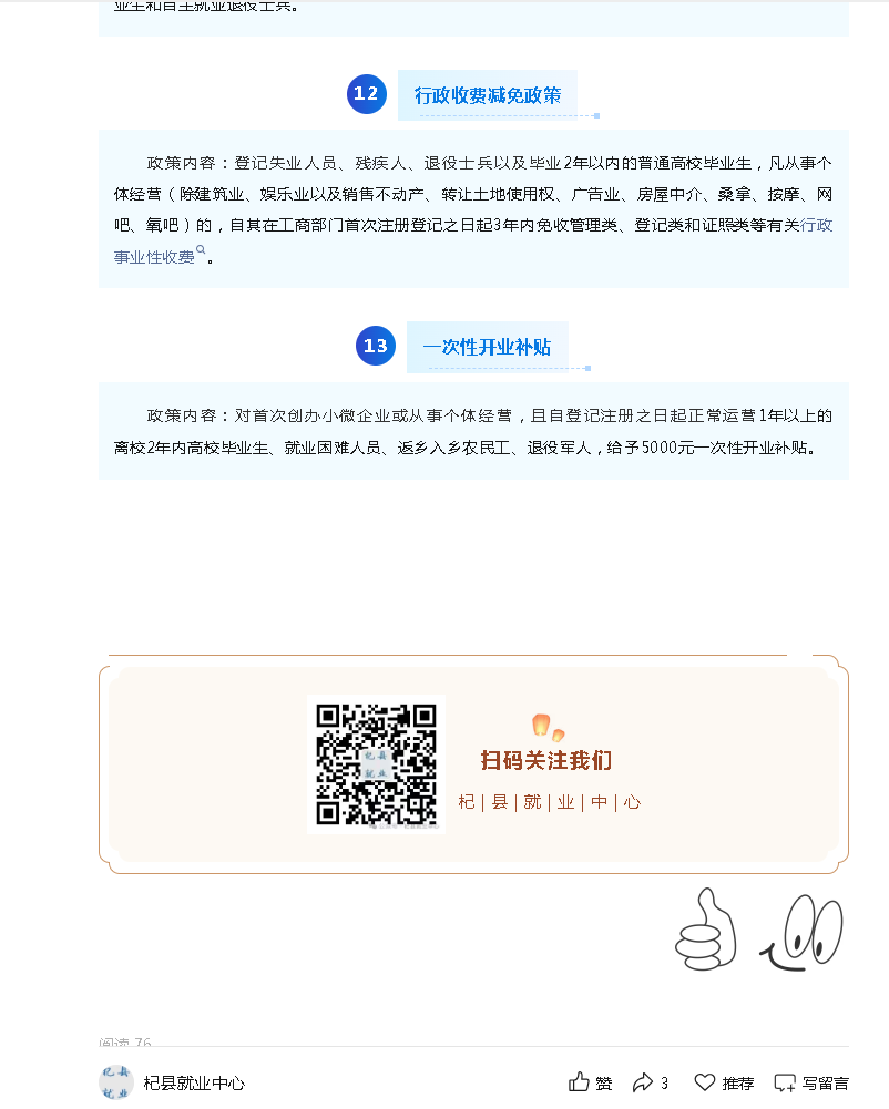 就业创业政策清单